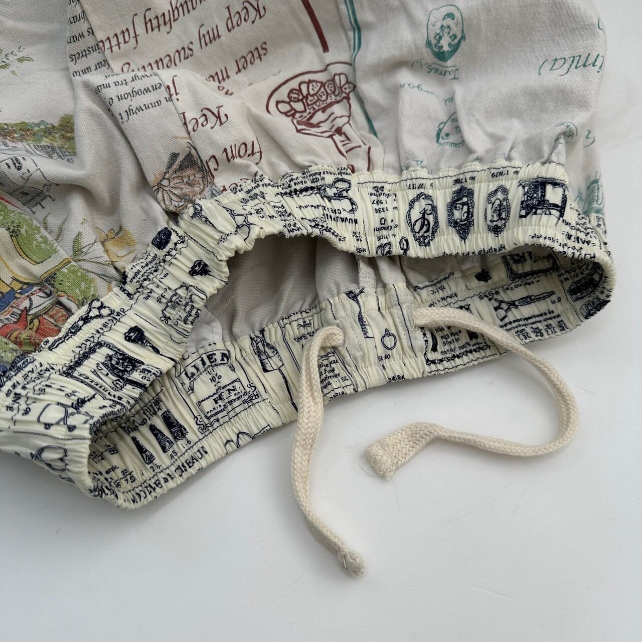ウエストはゴム仕上がりで、内側には調節用の紐をつけました。