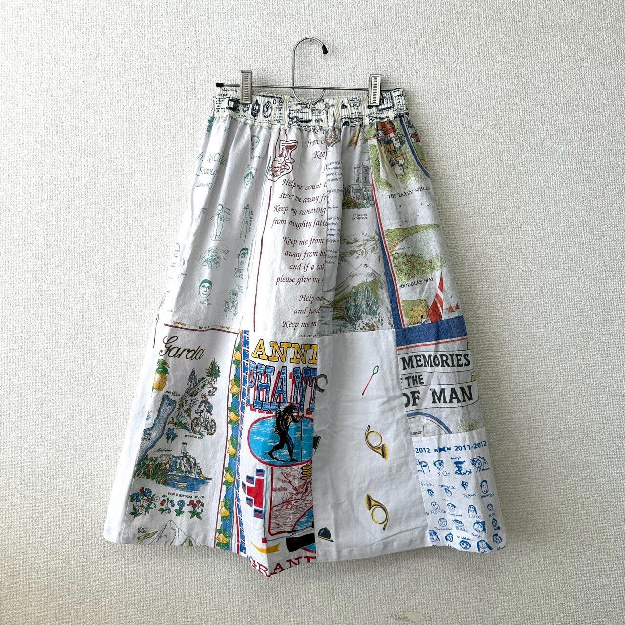 ヴィンテージのタペストリーやペナントクロスをパッチワークで作ったリメイクスカート。