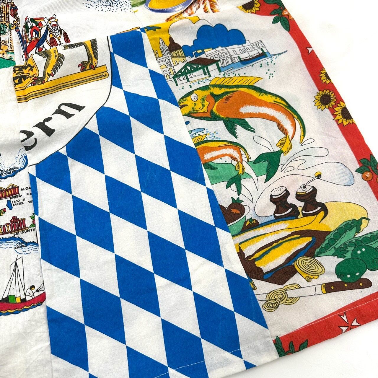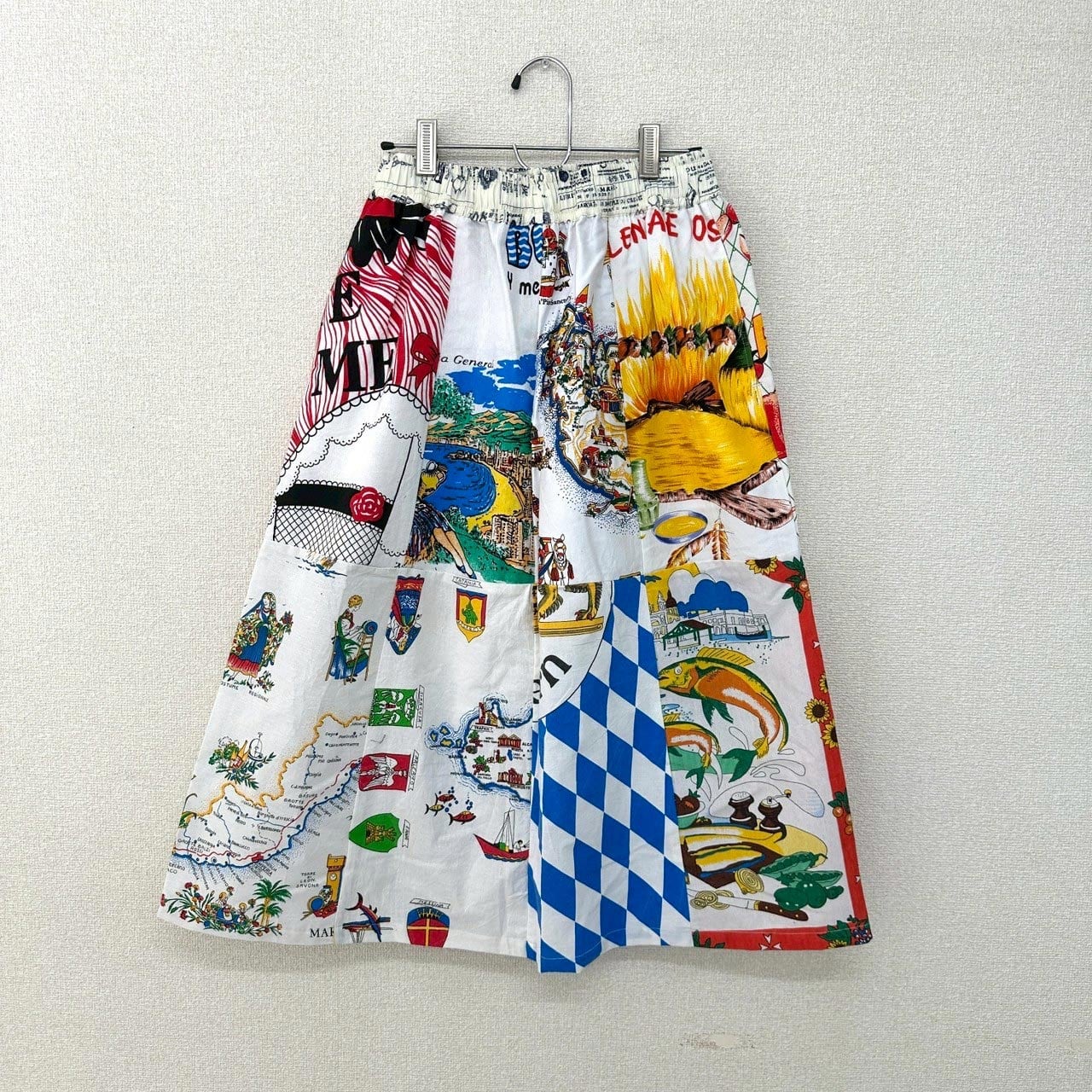 ヴィンテージのタペストリーやペナントクロスをパッチワークで作ったリメイクスカート。