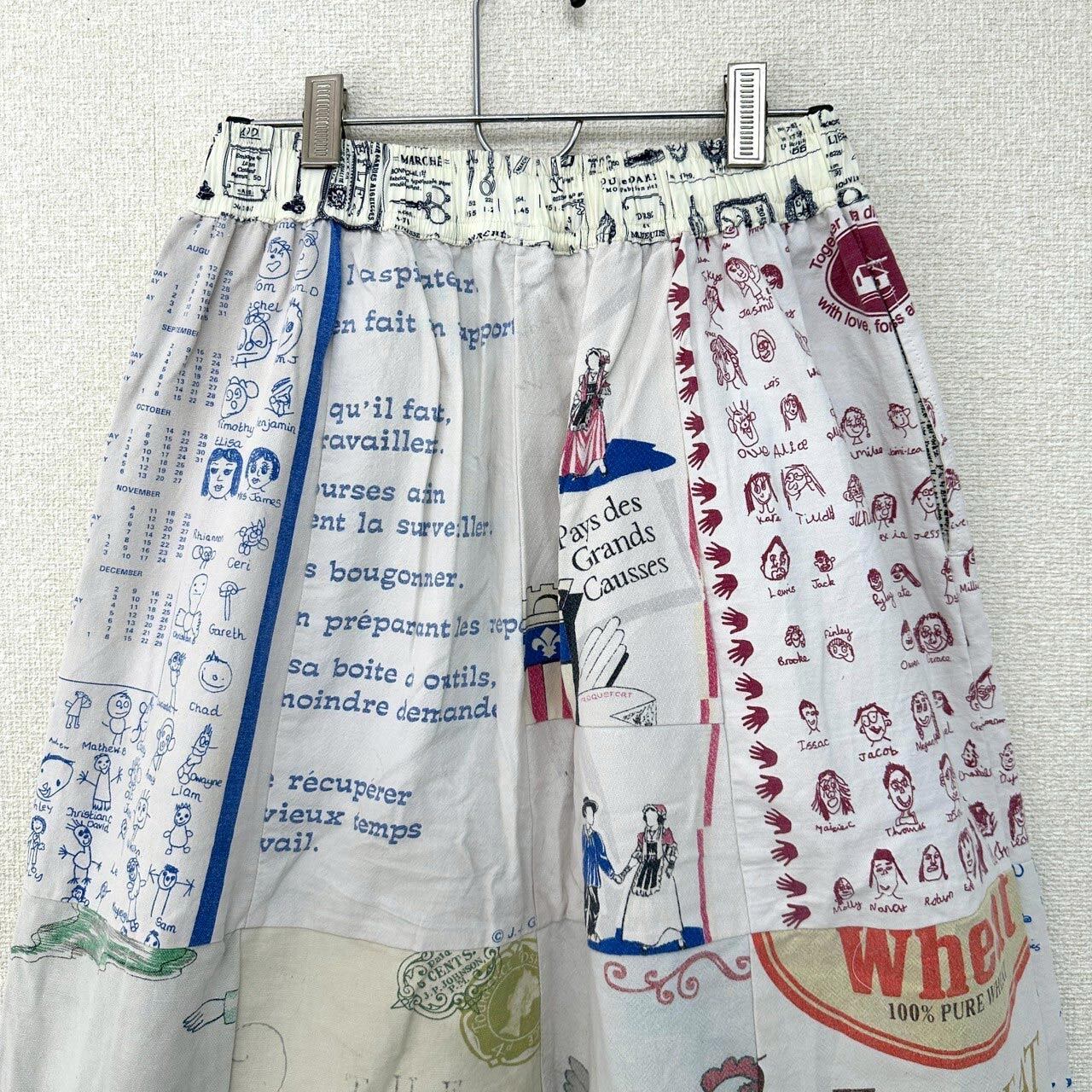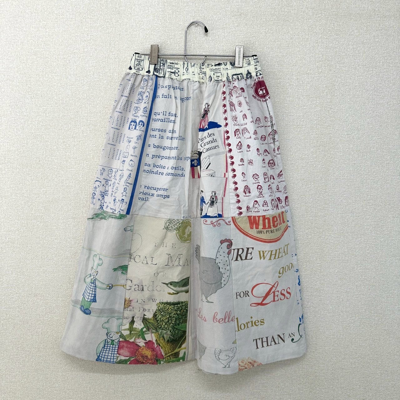 リメイク スカート ペナントクロス 総柄 ゴム 中古素材【UR-0742】