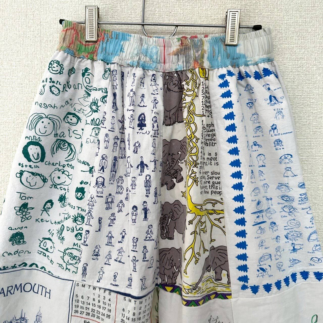 リメイク スカート ペナントクロス 総柄 ゴム 中古素材【UR-0743】