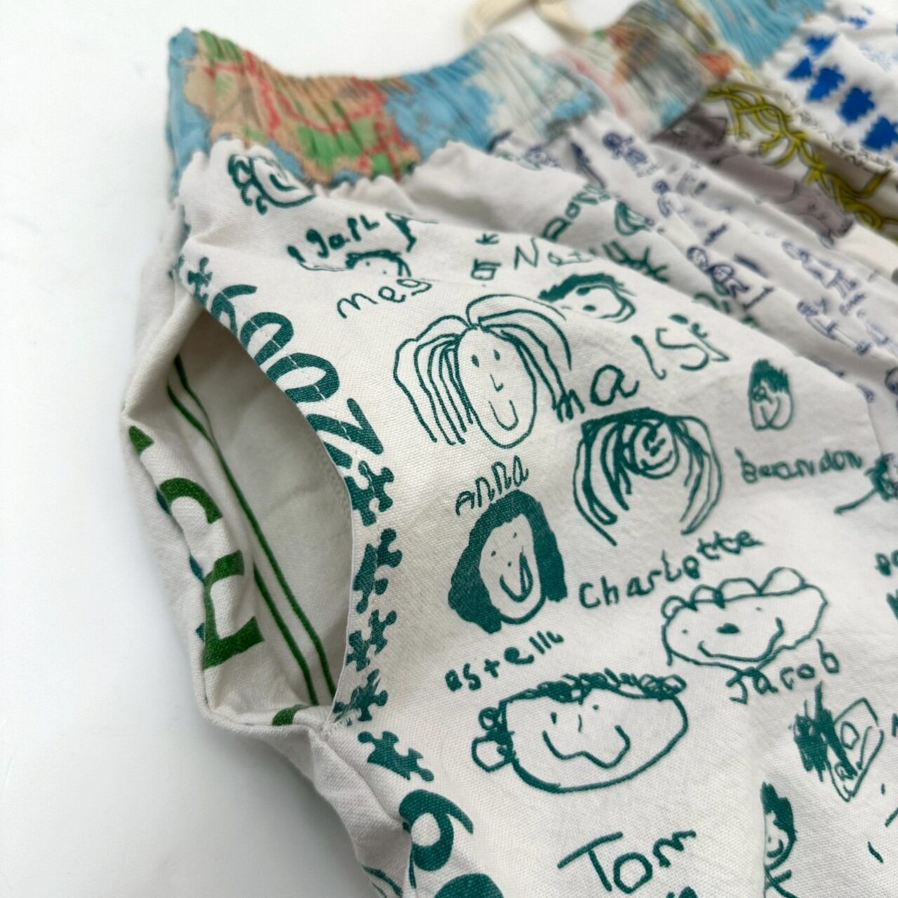 ウエストはゴム仕上がりで、内側には調節用の紐をつけました。
