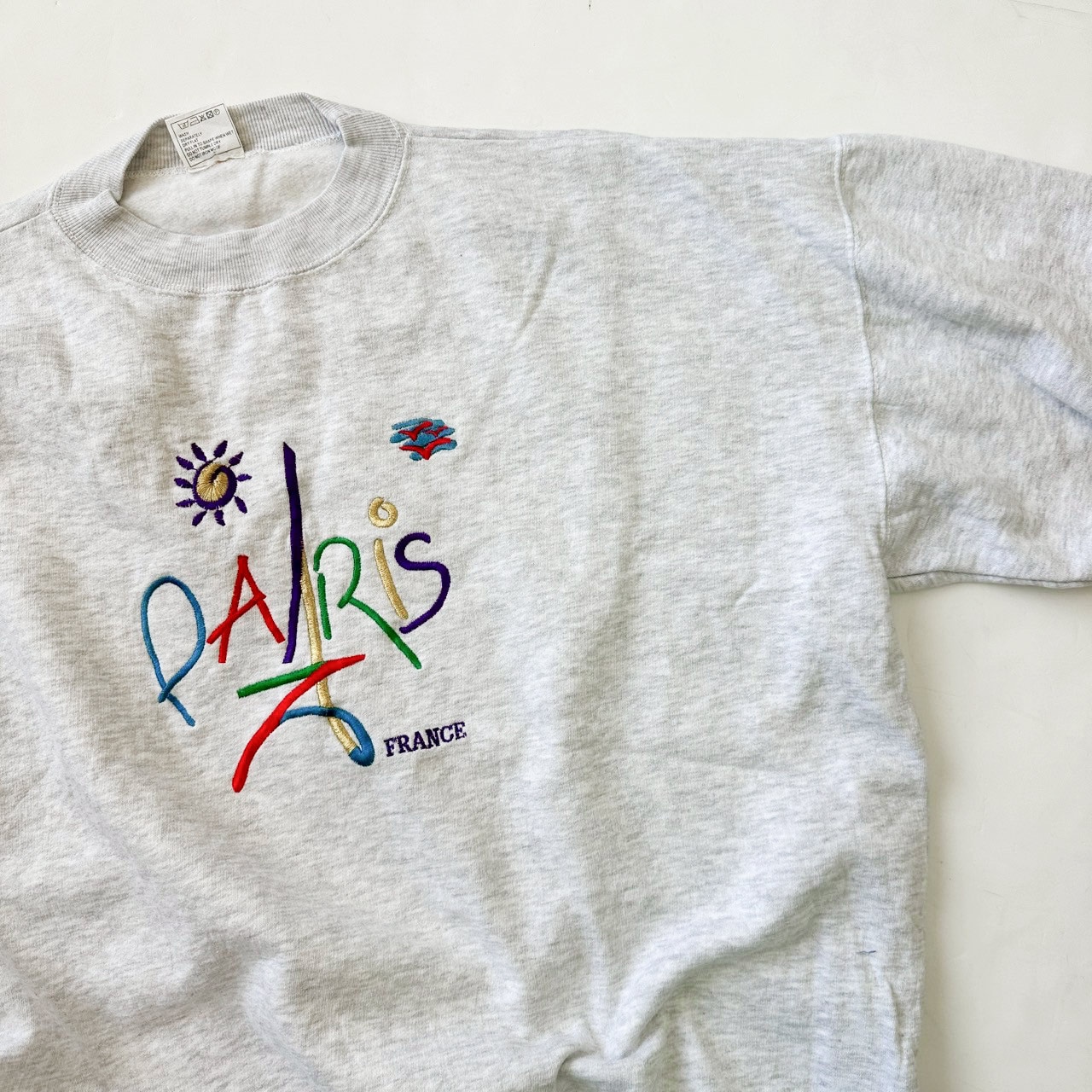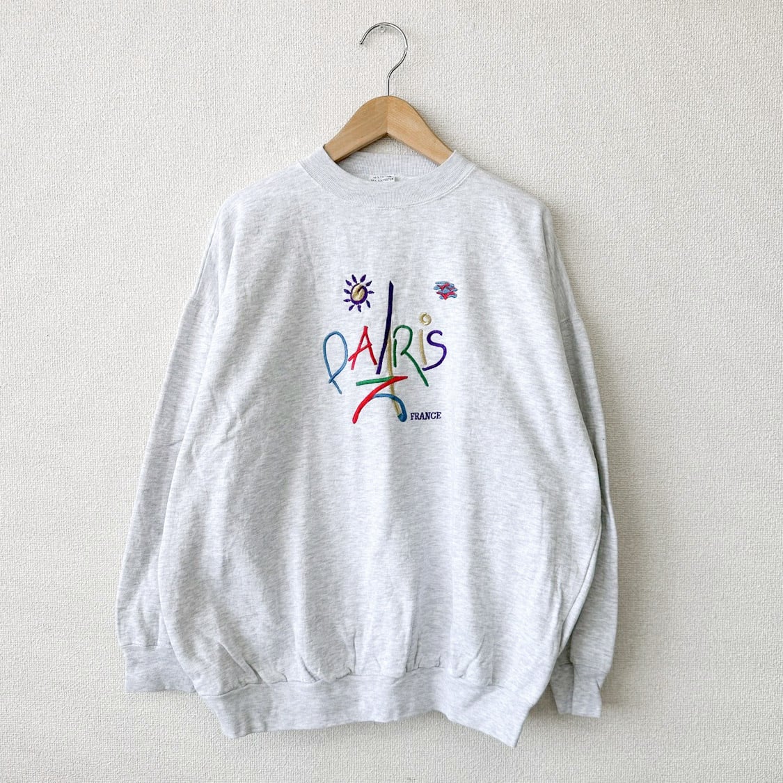 スウェット トレーナー 刺繍 ロゴ 裏起毛 ホワイト 白 XLサイズ 古着【UR-0592】