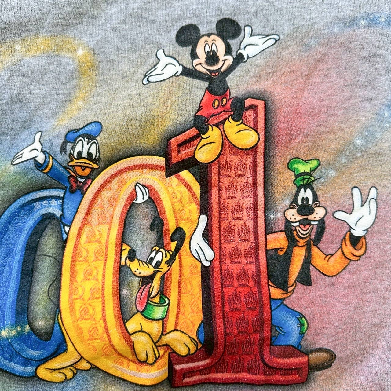 USA製 アメリカ製 ディズニー Disney キャラクター ミッキー スウェット トレーナー プリント グレー XLサイズ 古着【UR-0608】