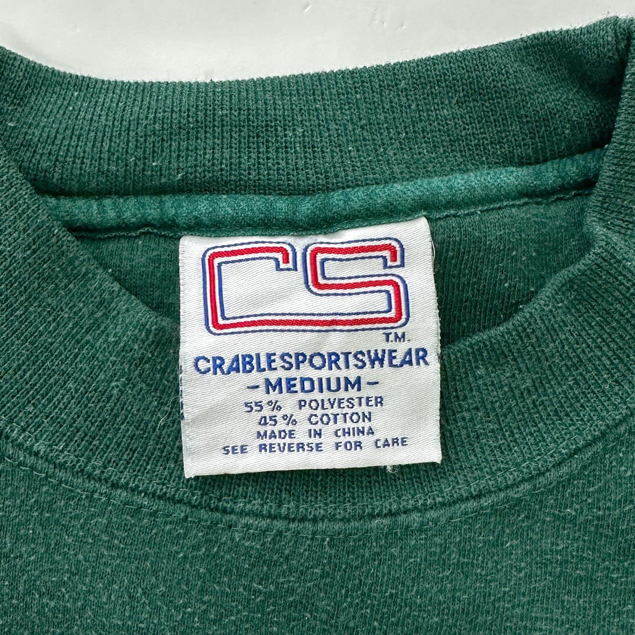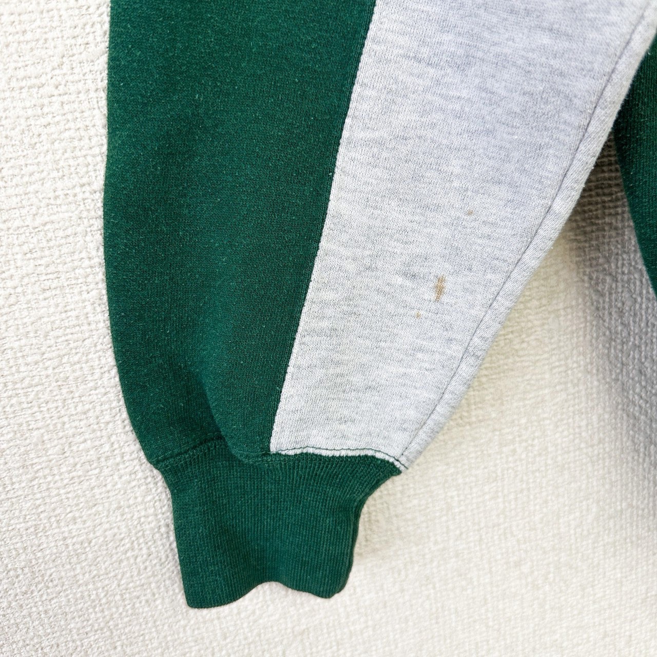 スウェット トレーナー 刺繍 カレッジ グリーン 緑 グレー Mサイズ 古着【UR-0613】