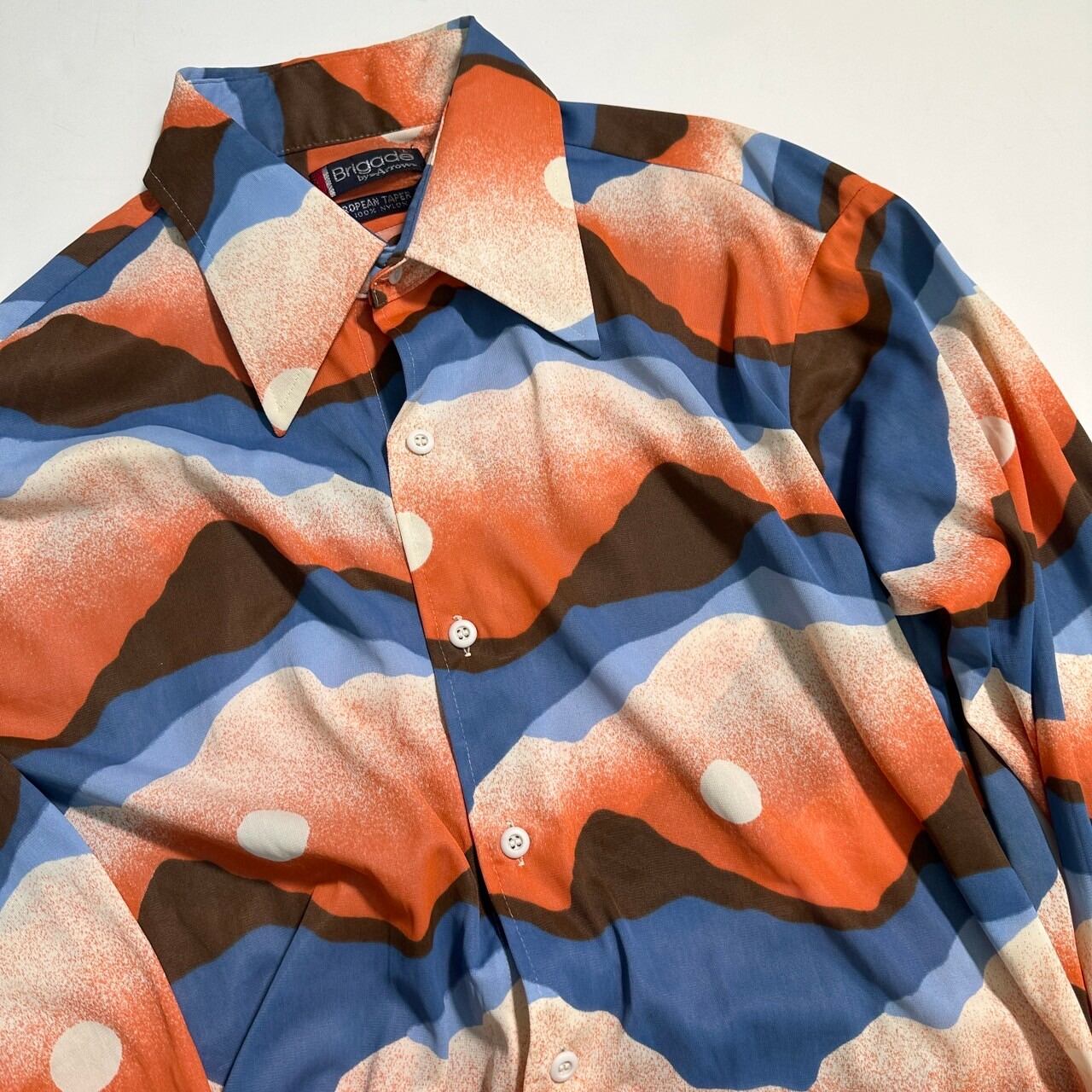 70年代デザイン クレイジーパターン 長袖シャツ シアー素材 古着
